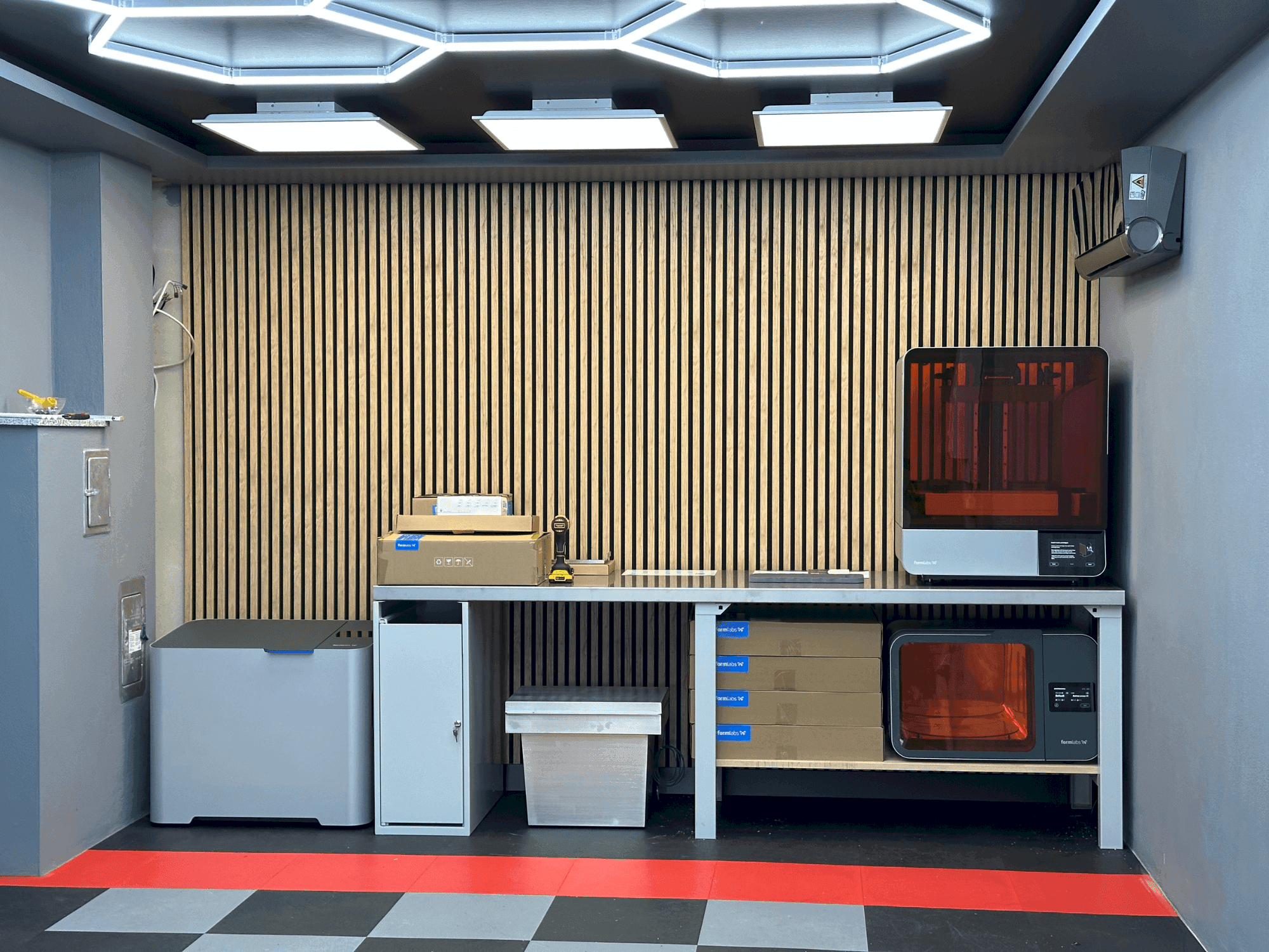 la impresora es nueva, todavía en su embalaje original y todavía tiene garantía Artículos adicionales: Banco de trabajo con revestimiento de acero inoxidable (2500x700x50 por placa) Tornillo de banco plegable para un banco de trabajo con cerradura. FORMLABS 4L con garantía hasta agosto de 2026